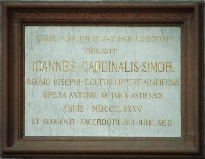 Keywords: Esztergom bazilika Simor tábla.JPG hu Simor János emléktáblája Own Villy Plaques in Esztergom Plaques to bishops in Hungary Esztergom Cathedral 1885 in Hungary Latin inscriptions in Hungary János Simor
