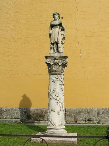Keywords: Esztergom-Szt Vendel.JPG Statue of St Vendel in Esztergom Hungary 2007-01-25 own assumed Villy Statues in Esztergom Statues of Saint Wendelin in Hungary Saint Anne church in Esztergom