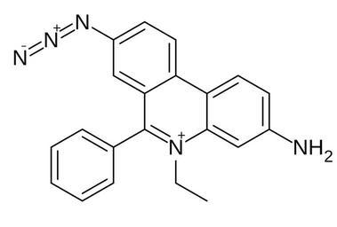 Keywords: Ethidium monoazide.svg Chemical structure of ethidium monoazide cation Own 13 24 17 April 2014 UTC Ed Edgar181 Fluorescent dyes Quaternary ammonium ions Organoazides Phenanthridines