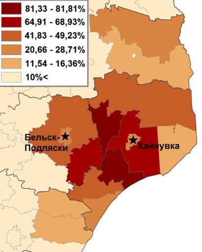 | Keywords: Ethnic Belarusians in Poland (2002)-rus.png en Etnic Belarusians share in NE Poland 2002 Census Russian version ru Доля этнических бело усов в населении севе о-восточной Польши пе епись 2002 own Bogomolov PL 2010-11-19 Maps of Belarusian minority in Poland |
