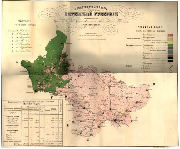 | Keywords: Ethnic map of Vitebsk Governorate - by Sementovski - 1871 AD.jpg en Ethnic map of Vitebsk Governorate Russian empire by Alexander Sementovski-Kurylo 1821-1893 Created in 1871 AD ru Этног афическая ка та Витебской губе нии составленная Александ ом Сементовским в 1871 г Опубликована в его книге Этног афический обзо Витебской губе нии 1872 г be Этнаг афічная ка та Віцебскай губе ні складзеная Аляксанд ам Семянтоўскім у 1871 г Размешчана ў яго кнізе Этног афический обзо Витебской губе нии 1872 г a book Александ Сементовский Этног афический обзо Витебской губе нии 1872 AD ; http //dlib rsl ru/viewer/01003083731 page 1 view list Alexander Sementovski-Kurylo 1821-1893 1871 PD-old-100 Aleksandr Sementovskiy Maps of Vitebsk Governorate Old maps of Belarus |