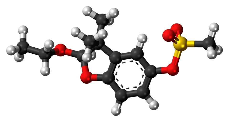 | Keywords: Ethofumesate-3D-balls.png Ball-and-stick model of the ethofumesate molecule a herbicide Colour code 505050 Carbon C black<br> F0F0F0 Hydrogen H white<br> F51E1E Oxygen O red<br> FAEB00 Sulfur S yellow<br> 2011-01-21 own <br> DS Visualizer Jynto talk Space-filling version cc-zero Mesylate esters Benzodihydrofurans Acetals Ethyl ethers Herbicides Images by Jynto Ball-and-stick models | ||||