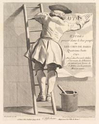 Keywords: Études prises dans le bas peuple ou les Cris de Paris - L’Afficheur.jpg Assessments 1 L ™Afficheur The Sign Poster Billsticker on a ladder sticking a poster on a wall 1742 Etching with some engraving image 9 x 7 1/16 in 22 9 x 18 cm sheet 9 3/8 x 7 1/8 in 23 8 x 18 1 cm Institution Metropolitan Museum of Art 3354286 object history exhibition history credit line Harris Brisbane Dick Fund 1953 <gallery> File FOURNEL 1887 p056 Fig 30 jpg File Man posting an advertisement for La publicité en France par Emile Mermet jpg</gallery> 399123 Inscription In image Etudes Prises dans le Bas Peuple ou Les Cris de Paris Quatrieme Suitte 1742 AParis chez Fessard Cloître St Germain de l ™Auxerois en entrant par la rue de l ™Arbre sec la premiere Maison neuve Below image on left Bouchardon inv del ; centered L ™Afficheur ; on right Gravé à l ™eau forte par Cx Et terminé au burin par Et Fessard Bottom centered A Paris Chés Joullain Quay de la Megisserie à la Ville de Rome accession number 53 600 588 37 PD-100 Études prises dans le bas peuple ou les Cris de Paris Engravings of people in Paris Etchings of Paris Rue de l'Arbre-Sec Paris Engravings in the Metropolitan Museum of Art Etchings in the Metropolitan Museum of Art Images of Paris from the Metropolitan Museum of Art Edmé Bouchardon Men at work in art Billstickers Posters in Paris Ladders in art Buckets in art Ladders in Paris Wooden ladders in France Buckets in Paris Featured picture sets of Paris Afficheur