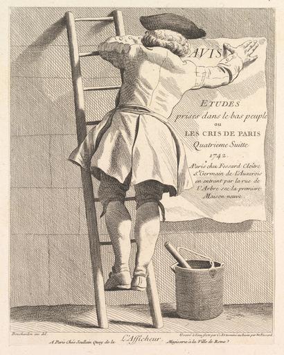 MAKE A MEME View Large Image Études prises dans le bas peuple ou les Cris de Paris - L’Afficheur.jpg Assessments 1 L ™Afficheur The Sign Poster Billsticker on a ladder sticking a poster on a wall 1742 Etching with some engraving image 9 x 7 1/16 in 22 9 x 18 cm ...