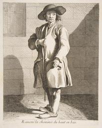 | Keywords: Études prises dans le bas peuple ou les Cris de Paris - Ramoné la cheminée du haut en bas.jpg Chimney Sweep A man standing full-length turned to the left whilst glancing to the right holding a scraping tool in his left hand 1737 Etching with some engraving image 8 7/8 x 7 1/4 in 22 6 x 18 4 cm sheet 9 5/16 x 7 5/16 in 23 7 x 18 5 cm Institution Metropolitan Museum of Art 3354381 object history exhibition history other versions 398846 Signature Etched below image on left bouchardon In ; on right C S Inscription Below image centered Ramoné la cheminée du haut en bas credit line Harris Brisbane Dick Fund 1953 accession number 53 600 588 17 PD-100 Études prises dans le bas peuple ou les Cris de Paris Etchings of Paris Etchings in the Metropolitan Museum of Art Images of Paris from the Metropolitan Museum of Art Chimney sweeps in art |