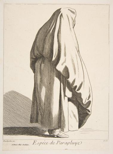 Keywords: Études prises dans le bas peuple ou les Cris de Paris - Espéce de Parapluye.jpg A Sort of Umbrella A woman wearing her overskirt over her head to shelter herself from the rain; she is seen standing in profile to the right 1746 Etching with some engraving image 8 9/16 x 6 3/4 in 21 8 x 17 1 cm sheet 9 1/4 x 6 13/16 in 23 5 x 17 3 cm Institution Metropolitan Museum of Art 3353866 object history exhibition history other versions 398356 Below image on left Bouchardon inv ; centered Espéce de Parapluye ; on right CxSx Bottom left A Paris Chés Joullain credit line Harris Brisbane Dick Fund 1953 accession number 53 600 588 60 PD-100 Études prises dans le bas peuple ou les Cris de Paris Etchings of Paris Etchings in the Metropolitan Museum of Art Images of Paris from the Metropolitan Museum of Art Umbrellas Peplums |