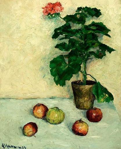 | View Original: | Eugen Hamm - Stilleben mit Geranientopf und Äpfeln (1907).jpg (530x650) | |||
