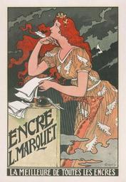 Keywords: Eugène Grasset-Encre L Marquet.jpg Artwork creator Eugène Grasset 1841-1917 1892 lithography paper cm LA MEILLEURE DE TOUTES LES ENCRES ~ lower center text ENCRE L MARQUET ~ lower left text object history credit line accession number http //flickr com/photos/interaktion/449700952/in/photostream/ PD-old-auto-1923 1917 Advertising posters of France Eugène Grasset Women in advertisements Women writing in art Female red hair in art 1892 advertisements 1892 lithographs Women facing left in art 1892 in France Feathers in art |