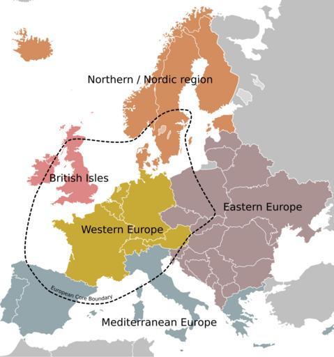 | Keywords: European regions.svg en European regions and European Core Boundary according to de Blij Muller 2002 The dotted line marks the boundary of the European core area the economically and culturally dominating region sv Europas regioner enligt de Blij Muller 2002 Den streckade linjen anger gränsen för det europeiska kärnområdet Own work by uploader Source de Blij Harm J Muller Peter O 2002 Geography Realms Regions and Concepts Tenth Edition New York John Wiley and Sons Koyos 2009-02-10 Regions of Europe SVG maps of Europe |