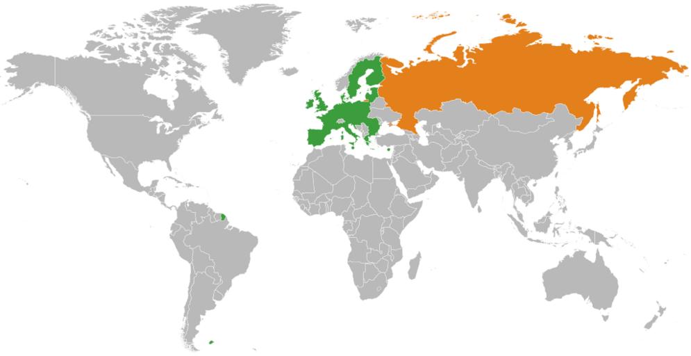 Keywords: European Union Russia Locator.svg The European Union and Russia Own inkscape 2009-01-20 Glentamara Bilateral maps of the European Union Bilateral maps of Russia SVG maps of Europe Maps needing South Sudan political boundaries