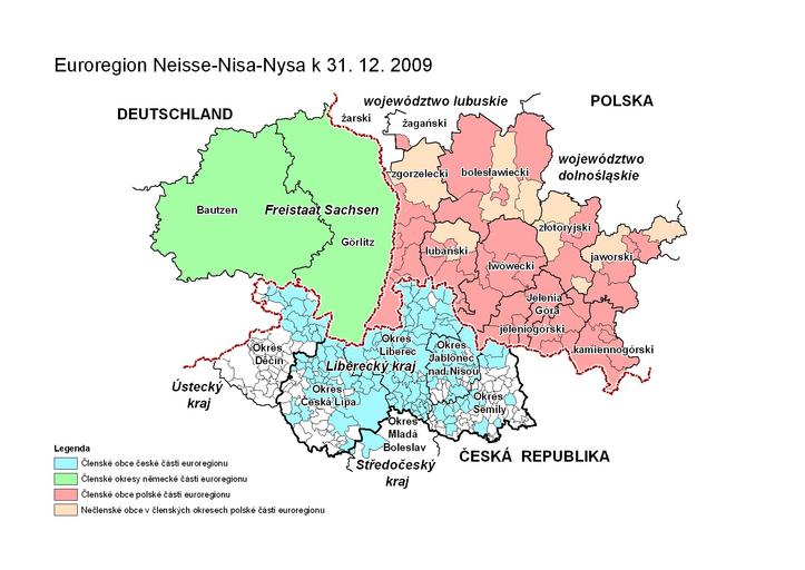 | Keywords: Euroregion Neisse-Nisa-Nysa.jpg Mapa Euroregionu Neisse-Nisa-Nysa členské okresy a obce Stav k 31 12 2009 Map of Euroregion Neisse-Nisa-Nysa participating counties and municipalities The situation on 31 12 2009 Karte der Euroregion Neisse-Nisa-Nysa Mitgliedsbezirke/-landkreise und -gemeinden Stand Ende 2009 Hellbraun Nichtmitgliedgemeinden in Mitgliedslandkreisen im polnischen Teil Beschriftung auf tschechisch Mapo de la Eŭroregiono Niso membraj distriktoj kaj komunumoj Stato fine de 2009 Helbrune Nemembrokomunumoj en membrodistriktoj de la pollanda parto Priskribo en la ĉeĥa 2009 http //csugeo i-server cz/xl/redakce nsf/i/prehled_vydanych_publikaci_ Český statistický úřad Krajská správa ČSÚ v Liberci other versions file Eŭroregiono Niso fine de 2009 jpg more language-neutral and slightly cropped cc-zero Euroregion Nisa - Neiße - Nysa |