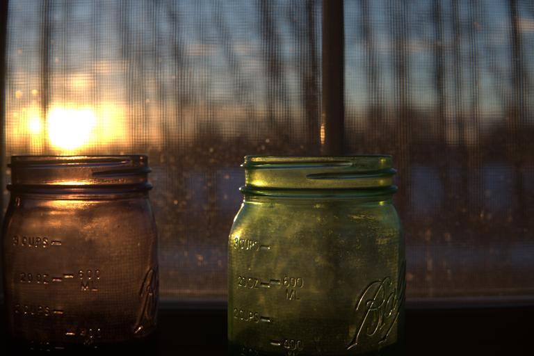 | Keywords: I'm afraid I've already taken a picture of the sun setting on these mason jars that I store on my window. Am I a shut-in that I can't get out and photograph an actual sunset? I'm afraid I've already taken a picture of the sun setting on these mason jars that I store on my window. Am I a shut-in that I can't get out and photograph an actual sunset? |