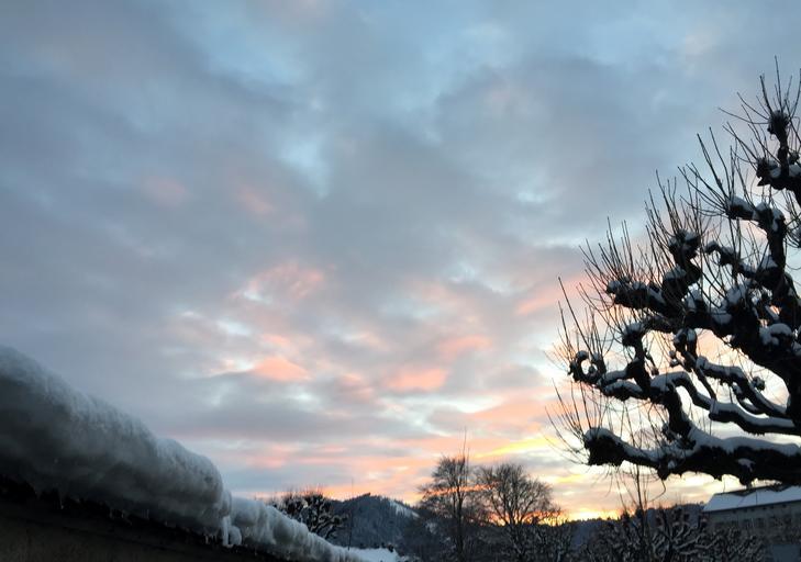 Keywords: evening evening sky winter snow plane mood weather mood sunset einsiedeln canton of schwyz switzerland