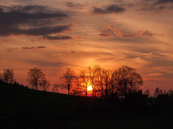 Keywords: evening sunset clouds landscape silhouette sky evening sky trees sun