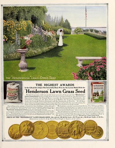| Keywords: Everything for the garden (16389860412).jpg the Henderson Lawn Grass Sew <br> THE HIGHEST AWARDS <br> In the Gift of the Judges Has Invariably Been Won by the Lawns Made With the <br> Henderson Lawn Grass Seed <br> Besides its country-wide use on the home grounds of the people the Henderson <br> Lawn Grass Seed has invariably been chosen to produce lawns at the International <br> Expositions held in the United States ” notably the Centennial at Philadelphia the <br> Columbian at Chicago the Pan-American at Buffalo; the Louisiana Purchase at St <br> Louis the Lewis Clark at Portland and the Jamestown at Norfolk At all these <br> great industrial congresses it has been our privilege to furnish the emerald setting for <br> many of the beautiful edifices designed by the great architects of the world <br> the Henderson <br> law Grass Seed <br> The brilliant color scheme adopted for these buildings ” 'white red and <br> yellow ” made these spacious green lawns most acceptable and restful to the <br> eye attracted the attention of every visitor and helped to make the <br> Henderson' Lawn Grass Seed famous throughout the country <br> As is usual at all these great undertakings everything was delayed to the <br> last moment and we were required to produce the lawns in a few weeks' <br> time We successfully accomplished this in from four to six weeks and as <br> the superintendent of grounds at the Jamestown Exposition remarked It <br> was a miracle in lawn making <br> We have been awarded numerous Gold Medals Blue Ribbons and Diplo- <br> mas butfar more than these we value the good opinions and enthusiastic <br> praise contained in the thousands of letters we have received from customers <br> in every state of the Union A few of these we print on the opposite page <br> The refreshing green and the close turf which attract the attention of the <br> hundreds of thousands who annually visit the baseball grounds in this coun- <br> try particularly the Polo Grounds in New York and Ebbets Field in <br> Brooklyn were produced with the Henderson Lawn Grass Seed <br> PRICE OF THE HENDERSON LAWN GRASS SEED 30c per qt ; 1 00 for 4 qts ; 1 75 per pk ; 6 00 per bush of 20 lbs <br> Delivered free in the U S by Parcel Post Freight or Express at our option 43874797 149634 78295 Page 5 Text http //www biodiversitylibrary org/page/43874797 c1915 10 5962/bhl title 78295 Henry G Gilbert Nursery and Seed Trade Catalog Collection ; Peter Henderson Co Biodiversity Heritage Library Everything for the garden 1915 Garden Stories Books Bulbs Plants Catalogs Equipment and supplies Flowers Gardening Lawn mowers Seeds U S Department of Agriculture National Agricultural Library bhl page 43874797 dc identifier http //biodiversitylibrary org/page/43874797 bhlGardenStories BHLinbloom bulbs plants u s department of agriculture national agricultural library bhlgardenstories bhlinbloom Information field Flickr posted date ISOdate 2015-01-28 Check categories 2015 August 25 CC-BY-2 0 BioDivLibrary https //flickr com/photos/61021753 N02/16389860412 2015-08-25 03 54 52 cc-by-2 0 PD-old-70-1923 Everything for the garden 1915 Photos uploaded from Flickr by Fæ using a script |