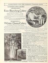 Keywords: Everything for the garden (16389907822).jpg ON PAGE 9 <br> HENDERSON'S <br> Winter QueenCelery <br> The Standard Variety for Winter Keeping <br> Late Celeries require different treatment from the self-blanching sorts After a <br> slight banking up in the open ground the plants are put away in deep trenches to blanch <br> Kept thus in contact with the earth they acquire a greater degree of tenderness and flavor <br> Winter Queen is a fine selection of Henderson's Golden Dwarf and has all the qualities which made it popular plus a larger and fuller <br> heart It is an excellent variety for a late crop is very hardy slow to rot in the trench and is perfect in quality See cut <br> Price 10c pkt 40c oz 1 25 \i lb 4 00 lb <br> Your Winter Queen was the best Celery in Los Angeles last <br> Christmas That was also the verdict of all my acquaintances <br> A C STEPHENS Los Angeles Cal <br> WE ALSO OFFER THE FOLLOWING VARIETIES OF CELERY <br> / oz for 3 000 plants <br> Celery plants ready July 1st Special catalogue mailed in June <br> GOLDEN ROSE HENDERSON'S In Europe red Celery is grown for its flavor In the <br> United States the white and yellow sorts are preferred for their appearance Golden <br> Rose is the most attractive and best flavored of all It is easy to grow blanches <br> quickly is extremely tender and should be in every garden Price '20c pkt <br> LONG-KEEPING AND WINTER VARIETIES <br> Boston Market Solid half-round green stalks blanching white; crisp and tender; habit <br> dwarf and robust Price 5c pkt 30c oz 80c 1 i lb 2 75 lb <br> Giant Pascal A desirable long-keeping Winter Celery; robust and healthy about 2 feet <br> high making broad thick stringless stalks and large hearts It blanches pearly white <br> and is crisp and of a fine nutty flavor Price 10c pkt 35c oz 1 00 l i lb 3 50 lb <br> Giant White Solid A long-stalked large-growing varietv often 3 feet high; excellent for <br> soup greens Price 5c pkt 25c oz 75c H lb 2 50 lb <br> Henderson's Dwarf White Perfectly solid half-round stalks blanching yellowish-white <br> crisp tender and of fine flavor Price 5c pkt 30c oz 80c M lb 2 75 lb <br> Henderson's Golden Dwarf A popular standard variety with a large heart and brittle solid <br> stalks blanching golden-yellow; crisp and fine a splendid keeper and of excellent flavor <br> Price 10c pkt 30c oz 90c H lb 3 00 lb <br> Henderson's New Rose A splendid variety for late use The color is rose; of exceptionally <br> fine flavor Price 15c pkt <br> FLAVORING CELERY Old Seed Excellent for flavoring soups etc Price 5c oz <br> 15c H lb 35c lb <br> CELERLAC OR TURNIP-ROOTED CELERY Produces roots which keep <br> for winter; it is highly esteemed either cooked or as salad <br> Erfurt Giant Round clean-skinned root Price 10c pkt <br> Large Smooth Prague A highly developed and larger form almost round <br> uniform smooth-skinned and free from side roots Price 10c pkt <br> CHERVIL The young aromatic leaves are used in soups <br> and salads Price 5c pkt 15c oz 40c M lb 1-25 lb <br> CHICORY Large-rooted The Barbe de Capucin of the <br> French In the fall the roots are planted in a dark cellar on a <br> sloping heap composed of alternate layers of three inches of <br> soil and the roots laid horizontally projecting one inch from <br> the heap They sprout quickly producing the delicious Barbe <br> de Capucin at a season when salad is most scarce It is very <br> easy to grow and is also used in summer as greens Price 5c <br> pkt 20c oz 55c \i lb 1 75 lb <br> WITLOOF-CHICORY Called also French Endive See <br> Witloof page 6+ Price 10c pkt 25c oz 70c H lb 2 25 lb <br> COLLARDS Georgia A tall loose form of Cabbage grown <br> in the South as a substitute for Cabbage The leaves when <br> cooked are tender and delicate Price 5c pkt 15c oz 35c <br> H lb 1 00 lb <br> OUR <br> lSt; Celery Culture for Home and Market SB <br> fnT r 8 Free to Customers f for ked 43874820 149634 78295 Page 28 Text http //www biodiversitylibrary org/page/43874820 c1915 10 5962/bhl title 78295 Henry G Gilbert Nursery and Seed Trade Catalog Collection ; Peter Henderson Co Biodiversity Heritage Library Everything for the garden 1915 Garden Stories Books Bulbs Plants Catalogs Equipment and supplies Flowers Gardening Lawn mowers Seeds U S Department of Agriculture National Agricultural Library bhl page 43874820 dc identifier http //biodiversitylibrary org/page/43874820 bhlGardenStories BHLinbloom bulbs plants u s department of agriculture national agricultural library bhlgardenstories bhlinbloom Information field Flickr posted date ISOdate 2015-01-28 Check categories 2015 August 25 CC-BY-2 0 BioDivLibrary https //flickr com/photos/61021753 N02/16389907822 2015-08-25 03 00 33 cc-by-2 0 PD-old-70-1923 Everything for the garden 1915 Photos uploaded from Flickr by Fæ using a script |