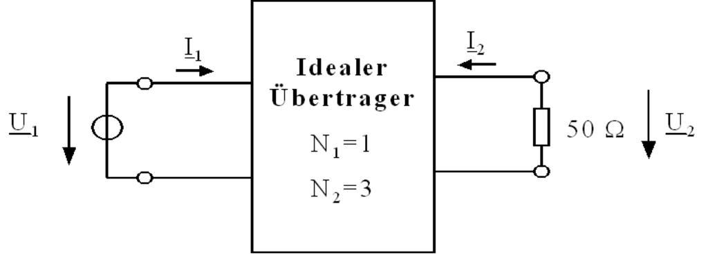 Keywords: Example1 Transformer.png Example of voltage transformation current transformation and resistance transformation 2007-02-18 own assumed Michael Lenz Transformer circuits