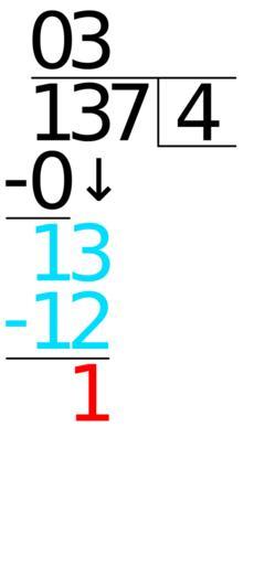 Keywords: Example 137 divided by 4 step 8.svg en Example 137 divided by 4 step 8 2012-06-20 own Averater cc-zero SVG calculus examples Division mathematics Uploaded with UploadWizard SVG files by Averater