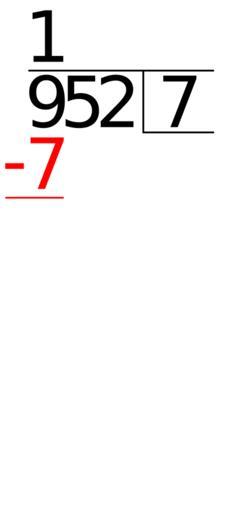 Keywords: Example 952 divided by 7 step 3.svg en Example 952 divided by 7 step 3 2012-06-19 own Averater cc-zero SVG calculus examples Division mathematics Uploaded with UploadWizard SVG files by Averater