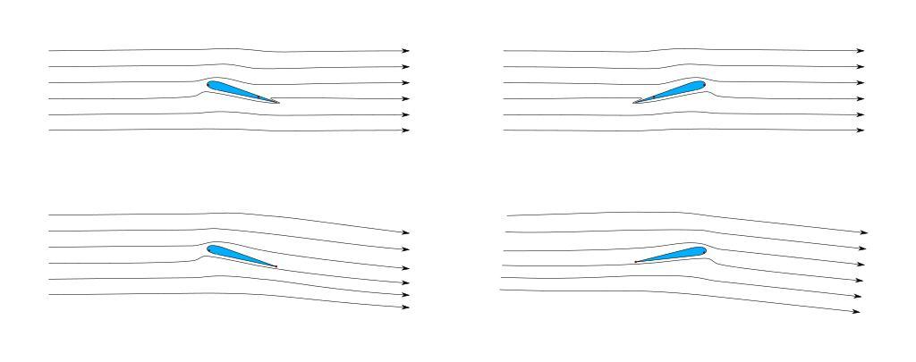 | Keywords: Examples of potential flow modelling.svg en Four examples of potential flow modeled around an airfoil On the top the flow is without circulation on the bottom circulation is added artificially until the stagnation point reaches a satisfactory position On the right flow is reversed and displays unphysical behavior illustrating that the reversibility of potential flow can lead to absurd cases 2015-02 own Olivier Cleynen other versions cc-zero SVG physics Uploaded with UploadWizard Potential flow Diagrams of fluid flow past airfoils |