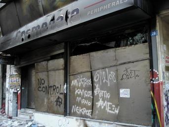 | Keywords: Exarcheia riots 4.jpg en Just one of very many small computer stores on Stournari Street that were destroyed in the riots Own Xenos2008 2008-12-10 2008 Greek riots Odos Stournari Shops in Athens Graffiti in Athens 2008 in Athens 1210 December 2008 in Greece 10 |