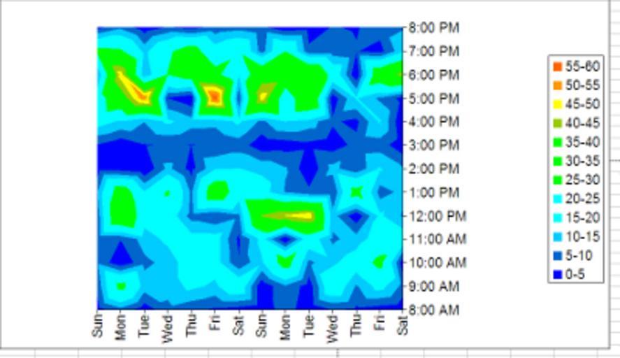 | Keywords: Excel Heat Map.png en A surface chart in Microsoft Excel edited to display as a Heat Map http //how best-free-information com/2009/04/how-to-create-a-heat-map-in-excel/ George Halt 2009-07-10 Cc-zero Created with Microsoft Excel Charts Spreadsheets Graph coloring |