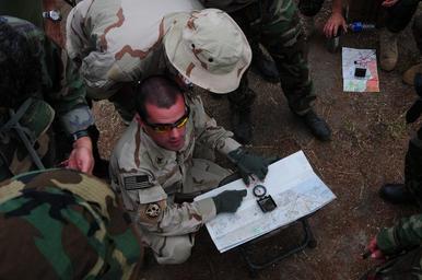 Keywords: Exercise Quickshot 2009 DVIDS172951.jpg en Petty Officer 1st Class Brandon Raile a mass communication specialist assigned to Fleet Combat Camera Group Pacific shows students how to align maps to magnetic north during a land navigation class The class is part of Exercise Qucikshot 2009 a semi-annual field training exercise designed to teach combat camera personnel and NATO forces how to operate in a combat environment <br>Unit Navy Media Content Services 2009-08-12 https //www dvidshub net/image/172951/exercise-quickshot-2009 090812-N-+++++-019 2009-05-19 11 42 CAMP PENDLETON CA US PD-USGov-Military-Navy Marine Corps Base Camp Pendleton Images from DoD uploaded by Fæ |