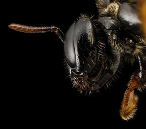 Keywords: bee bees insect insects hymenoptera taxonomy:genus=exoneura biml usgsbiml droege apoidea apidae макросъемка makro マクロ природа natur 自然 الطبيعة 大自然 naturaleza natura насекомое insekt 自然الحشرة 昆蟲 insectos australia down under downunder oz animal black background surreal Exoneura species, Two-tone Reed Bee, specimen collected in Australia Long: Reed Bees are found only on the continent of Australia and it is likely that most of the 41 species nest in the pithy centers of plant stems, similar to the Small Carpenter Bees (Ceratina). These bees have a unique method of childcare: rather than constructing individual cells for their young, they dispense with internal walls and make a crèche. They excavate the pith in the stem, add pollen and nectar, and then lay eggs over time. Thus, within a nest there can be bee juveniles at all stages of development, from egg to adult sometimes several adults. These groups of females can all be reproductive but often just the dominant female produces eggs. This dominant female can produce pheromones that keep the ovaries of subdominant females from developing. The home life of these bees is complex but flexible such that working positions within the colony and reproduction can change with the seasons and availability of pollen and nectar. Perhaps because all the larvae are together within the nest burrow rather than in their own individual little rooms, their morphology is more complex and variable than is the case for larvae of other bees. Most bee larvae are simple grubs lacking legs and mostly bald. Reed bee infants often have fleshy lobes and interesting hair patterns on their bodies, some even looking as if they have a Beatle’s moptop cut. ~~~~~~~~~~{{{{{{0}}}}}}~~~~~~~~~~ All photographs are public domain, feel free to download and use as you wish. Photography Information: Canon Mark II 5D, Zerene Stacker, Stackshot Sled, 65mm Canon MP-E 1-5X macro lens, Twin Macro Flash in Styrofoam Cooler, F5.0, ISO 100, Shutter Speed 200 Further in Summer than the Birds Pathetic from the Grass A minor Nation celebrates Its unobtrusive Mass. No Ordinance be seen So gradual the Grace A pensive Custom it becomes Enlarging Loneliness. Antiquest felt at Noon When August burning low Arise this spectral Canticle Repose to typify Remit as yet no Grace No Furrow on the Glow Yet a Druidic Difference Enhances Nature now -- Emily Dickinson Want some Useful Links to the Techniques We Use? Well now here you go Citizen: Basic USGSBIML set up: www.youtube.com/watch?v=S-_yvIsucOY USGSBIML Photoshopping Technique: Note that we now have added using the burn tool at 50% opacity set to shadows to clean up the halos that bleed into the black background from "hot" color sections of the picture. www.youtube.com/watch?v=Bdmx_8zqvN4 PDF of Basic USGSBIML Photography Set Up: ftp://ftpext.usgs.gov/pub/er/md/laurel/Droege/How%20to%20Take%20MacroPhotographs%20of%20Insects%20BIML%20Lab2.pdf Google Hangout Demonstration of Techniques: plus.google.com/events/c5569losvskrv2nu606ltof8odo or www.youtube.com/watch?v=4c15neFttoU Excellent Technical Form on Stacking: www.photomacrography.net/ Contact information: Sam Droege sdroege@usgs.gov 301 497 5840 Exoneura species, Two-tone Reed Bee, specimen collected in Australia Long: Reed Bees are found only on the continent of Australia and it is likely that most of the 41 species nest in the pithy centers of plant stems, similar to the Small Carpenter Bees (Ceratina). These bees have a unique method of childcare: rather than constructing individual cells for their young, they dispense with internal walls and make a crèche. They excavate the pith in the stem, add pollen and nectar, and then lay eggs over time. Thus, within a nest there can be bee juveniles at all stages of development, from egg to adult sometimes several adults. These groups of females can all be reproductive but often just the dominant female produces eggs. This dominant female can produce pheromones that keep the ovaries of subdominant females from developing. The home life of these bees is complex but flexible such that working positions within the colony and reproduction can change with the seasons and availability of pollen and nectar. Perhaps because all the larvae are together within the nest burrow rather than in their own individual little rooms, their morphology is more complex and variable than is the case for larvae of other bees. Most bee larvae are simple grubs lacking legs and mostly bald. Reed bee infants often have fleshy lobes and interesting hair patterns on their bodies, some even looking as if they have a Beatle’s moptop cut. ~~~~~~~~~~{{{{{{0}}}}}}~~~~~~~~~~ All photographs are public domain, feel free to download and use as you wish. Photography Information: Canon Mark II 5D, Zerene Stacker, Stackshot Sled, 65mm Canon MP-E 1-5X macro lens, Twin Macro Flash in Styrofoam Cooler, F5.0, ISO 100, Shutter Speed 200 Further in Summer than the Birds Pathetic from the Grass A minor Nation celebrates Its unobtrusive Mass. No Ordinance be seen So gradual the Grace A pensive Custom it becomes Enlarging Loneliness. Antiquest felt at Noon When August burning low Arise this spectral Canticle Repose to typify Remit as yet no Grace No Furrow on the Glow Yet a Druidic Difference Enhances Nature now -- Emily Dickinson Want some Useful Links to the Techniques We Use? Well now here you go Citizen: Basic USGSBIML set up: www.youtube.com/watch?v=S-_yvIsucOY USGSBIML Photoshopping Technique: Note that we now have added using the burn tool at 50% opacity set to shadows to clean up the halos that bleed into the black background from "hot" color sections of the picture. www.youtube.com/watch?v=Bdmx_8zqvN4 PDF of Basic USGSBIML Photography Set Up: ftp://ftpext.usgs.gov/pub/er/md/laurel/Droege/How%20to%20Take%20MacroPhotographs%20of%20Insects%20BIML%20Lab2.pdf Google Hangout Demonstration of Techniques: plus.google.com/eve