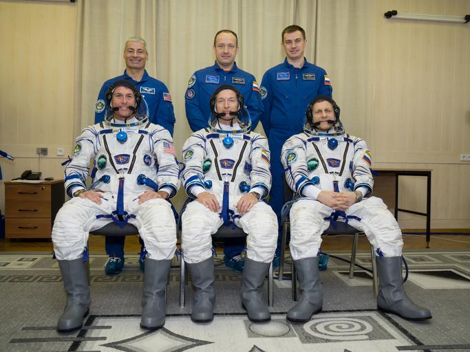 | Keywords: alexander misurkin alexandermisurkin andrey borisenko andreyborisenko baikonur baikonur cosmodrome baikonurcosmodrome expedition 49 expedition49 expedition 49 preflight expedition49preflight kaz kazakhstan mark vande hei markvandehei nikolai tikhonov nikolaitikhonov roscosmos sergey ryzhikov sergeyryzhikov shane kimbrough shanekimbrough soyuz ms-02 soyuzms02 sport team sport nhq201610080007 (Oct. 8, 2016) --- Expedition 49 prime crew members, seated in their Sokol suits, Shane Kimbrough of NASA, left, Soyuz commander Sergey Ryzhikov, center, and flight engineer Andrey Borisenko of Roscosmos, right, and backup crew members, standing, Mark Vande Hei of NASA, left, Alexander Misurkin, center, and Nikolai Tikhonov of Roscosmos, left, pose for a picture as they prepare to conduct their first check dress rehearsal activities, Saturday, Oct. 8, 2016 at the Baikonur Cosmodrome in Kazakhstan. Kimbrough, Ryzhikov, and Borisenko will launch from the Baikonur Cosmodrome in Kazakhstan on Oct. 19. Photo Credit: (NASA/Victor Zelentsov) nhq201610080007 (Oct. 8, 2016) --- Expedition 49 prime crew members, seated in their Sokol suits, Shane Kimbrough of NASA, left, Soyuz commander Sergey Ryzhikov, center, and flight engineer Andrey Borisenko of Roscosmos, right, and backup crew members, standing, Mark Vande Hei of NASA, left, Alexander Misurkin, center, and Nikolai Tikhonov of Roscosmos, left, pose for a picture as they prepare to conduct their first check dress rehearsal activities, Saturday, Oct. 8, 2016 at the Baikonur Cosmodrome in Kazakhstan. Kimbrough, Ryzhikov, and Borisenko will launch from the Baikonur Cosmodrome in Kazakhstan on Oct. 19. Photo Credit: (NASA/Victor Zelentsov) |