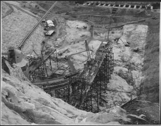Keywords: Exposed bedrock on the west side with concrete mixing plant placing trestles and gantry cranes - NARA - 294143.tif Scope and content Photograph from Volume Two of a series of photo albums documenting the construction of the Grand Coulee Dam and related work on the Columbia Basin Project General notes 294143 Local identifier Department of the Interior Bureau of Reclamation Engineering and Research Center 05/18/1981 - 03/04/1988 NARA's Rocky Mountain Region Denver NRGA Building 48 Denver Federal Center West 6th Avenue and Kipling Street Denver CO 80225-0307 11/1935 Record group Record Group 115 Records of the Bureau of Reclamation 1889 - 2008 Record group ARC 444 Photograph albums compiled 1903 - 1972 Series ARC 293611 File unit File unit ARC Variant control numbers NAIL Control Number NRG-115-CONSTPHO85006-COLBASIN2864 yes Other versions <gallery> File Exposed bedrock on the west side with concrete mixing plant placing trestles and gantry cranes - NARA - 294143 jpg jpg </gallery> NARA-cooperation PD-USGov Construction of the Grand Coulee Dam NARA TIF images with categorized JPGs |