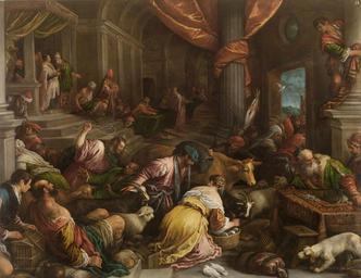 Keywords: Expulsión de los mercaderes del Templo, de Francesco Bassano (Museo del Prado).jpg La obra representa el momento en que Jesucristo encolerizado expulsó a los mercaderes del Templo de Jerusalén ~ 1585 oil on canvas Size cm 184 150 Institution Museo del Prado https //www museodelprado es/coleccion/obra-de-arte/expulsion-de-los-mercaderes-del-templo/81c8dc1e-f1ba-4a15-81fe-d450a29aaea8 accession number P00027 https //www museodelprado es/coleccion/obra-de-arte/expulsion-de-los-mercaderes-del-templo/81c8dc1e-f1ba-4a15-81fe-d450a29aaea8 PD-old-100 Paintings of the Cleansing of the Temple in Spain 16th-century paintings of the Cleansing of the Temple Paintings by Francesco Bassano the Younger in the Prado Museum 16th-century paintings in the Prado Museum 1580s paintings in Spain |