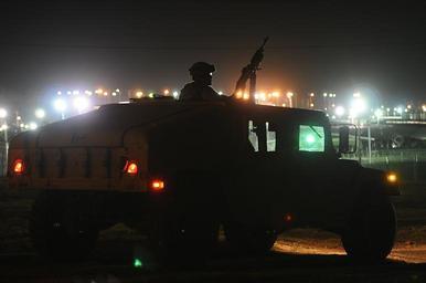 | Keywords: External Security Patrols Joint Task Force Guantanamo at Night DVIDS316508.jpg en Army Spc Thomas Salisbury with the Rhode Island Army National Guard ™s 115th Military Police Company is silhouetted by the lights of Joint Task Force Guantanamo during a routine patrol Sept 2 2010 The National Guard unit is here on a year-long deployment providing security at Joint Task Force Guantanamo 2010-09-02 Petty Officer 3rd Class Joshua Nistas https //www dvidshub net/image/316508 100902-N-+++++-100 2010-09-08 12 24 GUANTANAMO BAY CU PD-USGov-Military-Navy Joint Task Force Guantanamo Guantanamo Bay Images from DoD uploaded by Fæ |