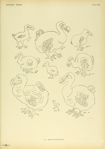 | Keywords: Extinctbirds1907 P24B Didus cucullatus0333.png  en The dodo Raphus cucullatus was a flightless bird endemic to the Indian Ocean island of Mauritius No 1 Outline of Dodo in Roelandt Savery's picture at Berlin Vide antea No 2 in the List of Paintings No 2 Outline of picture by Roelandt Savery in the British Museum Vide antea No 9 in the List of Paintings No 3 Outline of Dodo in Jacob van Neck's Voyage Plate 2 1598 No 4 Outline of Roelandt Savery's Dodo Vienna Vide antea No 4 in the List of Paintings No 5 Outline of Dodo in Broeck's Voyage Peter van Broeck's Voyage 1617 No 6 Outline of Dodo in Piso's additions to Jacob Bontiu's Oriental Natural History 1658 No 7 Outline of Dodo in Sir Thomas Herbert's Relation of some yeares Travels 1626 No S Outline of Dodo in Clusius Exoticorum libri decem 1605 No 9 Outline of Dodo in Joan Nievhof's Gedenkwaerdige Zee and Lantreize 1682 Extinct birds an attempt to unite in one volume a short account of those birds which have become extinct in historical times that is within the last six or seven hundred years to which are added a few which still exist but are on the verge of extinction By Lionel Walter Rothschild 2nd Baron Rothschild 8 February 1868 “ 27 August 1937 http //www archive org/details/extinctbirdsatte00roth Unknown Book Lionel Walter Rothschild 1907 Not in copyright Public Domain Original PD-old Extinct Birds Rothschild book 24b Raphus cucullatus in art Jacobus Bontius |