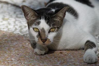 Keywords: eyes close-up face alert cat feline kitten kitty pet animal domestic mammal young adorable outdoors fur