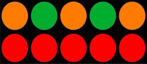 Keywords: F1StartLights.svg Formula One Start Lights as seen by television viewers Different to what drivers see Own 2006-08-25 Alex Jones All Rights Released en Five minutes before the formation lap begins all five red lights will illuminate After one minute a light will extinguish After another minute a second light will extinguish This continues until all lights are extinguished and the two green lights will illuminate and the formation lap commences After the formation lap the red lights will light up one at a time before a short pause and then all of them going out indicating the start of the race In the event of an aborted start all five red lights will light up and the three orange lights will flash Then both red and orange lights are extinguished and the green lights illuminate to indicate another formation lap whilst the problem is dealt with User Alexj2002/InkscapePD Motorsport lights |