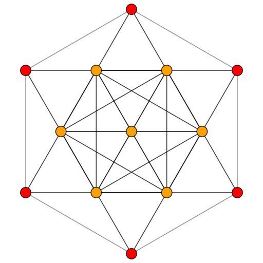 Keywords: F4 roots A2plane.svg en root system diagram show orthogonally projected into a coxeter plane Self 1/24/12 self Root systems Set of colored Coxeter plane graphs; 13 vertices