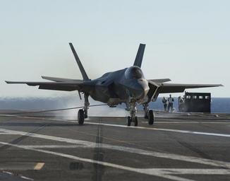 Keywords: F-35C Lightning II at-sea trials 141104-N-ZZ999-017.jpg en An F-35C Lightning II carrier variant joint strike fighter conducts the first catapult launches aboard the aircraft carrier USS Nimitz The F-35 Lightning II Pax River Integrated Test Force from Air Test and Evaluation Squadron 23 is conducting initial at-sea trials aboard Nimitz 2014-11-04 CVN 68 https //www dvidshub net/image/1648899 141104-N-ZZ999-017 2014-11-07 19 48 USS NIMITZ AT SEA PD-USGov-Military-Navy F-35C Lightning II aircraft carrier landings Images from DoD uploaded by Fæ |