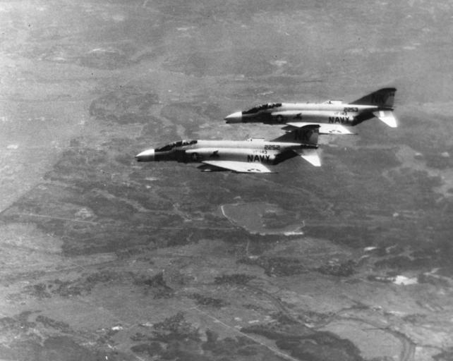 | Keywords: F-4B Phantom IIs of VF-143 over Vietnam c1966.jpg Two U S Navy McDonnell F-4B-22-MC Phantom II BuNo 152252 152253 of Fighter Squadron 143 Pukin' Dogs in flight over Vietnam VF-143 was assigned to Attack Carrier Air Wing 14 CVW-14 aboard the aircraft carrier USS Ranger CVA-61 for a deployment to Vietnam from 10 December 1965 to 25 August 1966 Official U S Navy photo http //www history navy mil/our-collections/photography/numerical-list-of-images/nhhc-series/naval-subjects-collection/l01--aviation/l01-21-01-01-two-f-4b-phantoms html L01-21 01 01 from the U S Navy http //www history navy mil Naval History and Heritage Command ca 1966 U S Navy PD-USGov-Military-Navy F-4B Phantom II Fighter Squadron 143 United States Navy Vietnam War in 1966 |