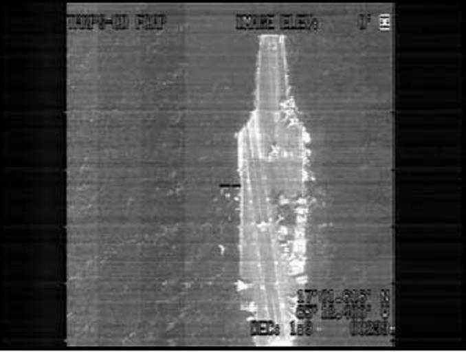 Keywords: F-CAP from F14 of USS Harry Truman.jpg en FIGURE 5 F-CAP image of the USS Harry S Truman captured from the F-14 cockpit video display and transmitted via the FTI system Fast Tactical Imagery FTI low-bandwidth 10 kbps radio link US Naval Research Lab http //www nrl navy mil/research/nrl-review/2003/information-technology/lee/ see figure 5 F14 pilot 2002 General views of USS Harry S Truman CVN-75 PD-USGov-Military-Navy |