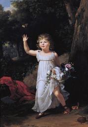 Keywords: Fabre - Portrait du jeune Edgar Clarke.jpg Artwork Creator François-Xavier Fabre fr Portrait du jeune Edgar Clarke 1802 Oil on canvas cm 145 100 Institution Musée Fabre Achat de la Communauté d ™Agglomération de Montpellier 2007 - La rétrospective François-Xavier Fabre novembre 2007- février 2008 présente la vie l ™oeuvre et le rôle déterminant de cet artiste dans la création d ™un musée à Montpellier A cette occasion Montpellier Agglomération a investi 250 385 ‚¬ pour l ™achat lors d ™une vente publique de Sotheby ™s à New-York d ™un important tableau de François-Xavier Fabre le Portrait d ™Edgar Clarke réalisé à Florence en 1802 La société Rambier Immobilier a également investi 10 000 ‚¬ pour l ™acquisition de cette Å“uvre 2008 1 1 Ce tableau illustre une thématique peu présente dans les toiles de François-Xavier Fabre exposées au musée Fabre le portrait mondain dans un cadre de nature Ce tableau représente Edgar Clarke âgé de trois ans fils du général Clarke et futur ministre de la Guerre de Napoléon L'enfant portant un panier rempli de fleurs est saisi au naturel dans un cadre de nature idyllique poursuivant un papillon D'autres portraits de la famille Clarke peints par Fabre sont conservés dans les musées de France tels que le Portrait du général Clarke au musée des Beaux-Arts de Nantes et le Portrait de la famille Clarke au musée Marmottan à Paris Il prendra place dans les salles dévolues aux Å“uvres de la collection François-Xavier Fabre peintre fondateur du musée Fabre de Montpellier Agglomération voir sur le site les oeuvres en vedette http //www framemuseums org/jsp/fiche_oeuvre jsp STNAV RUBNAV CODE 1211183449655 LANGUE 0 RH www framemuseums org Other versions <gallery>François-Xavier Fabre - Portrait de Edgar Clarke jpg</gallery> PD-old-100 DEFAULTSORT Clarke PD-old files by User Jimmy from fr wikipedia François-Xavier Fabre Clarke Paintings in Musée Fabre Edgar Clarke 1802 1802 oil on canvas paintings in France Portrait 1802 portrait paintings from France Male 19th-century oil portraits of boys at full length 1802 19th-century portrait paintings in France 1802 Paintings of boys' dresses 1802 19th-century promenade portraits 1802 French promenade portraits 1802