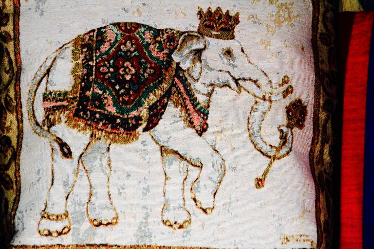 Keywords: fabric elephant pattern printed tusk printed on t shirt crown scepter