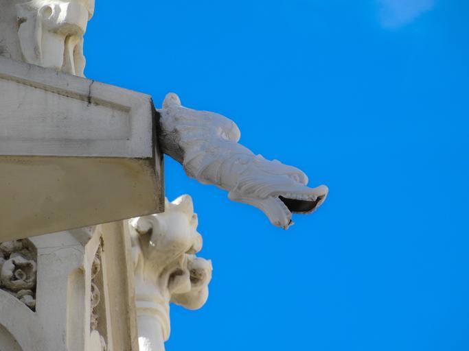 Keywords: facade churches gothic architecture cathedral art history bat gargoyle stained glass window sky blue