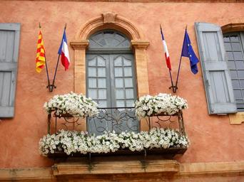 Keywords: facade provence fleuri spring roussillon town hall flag