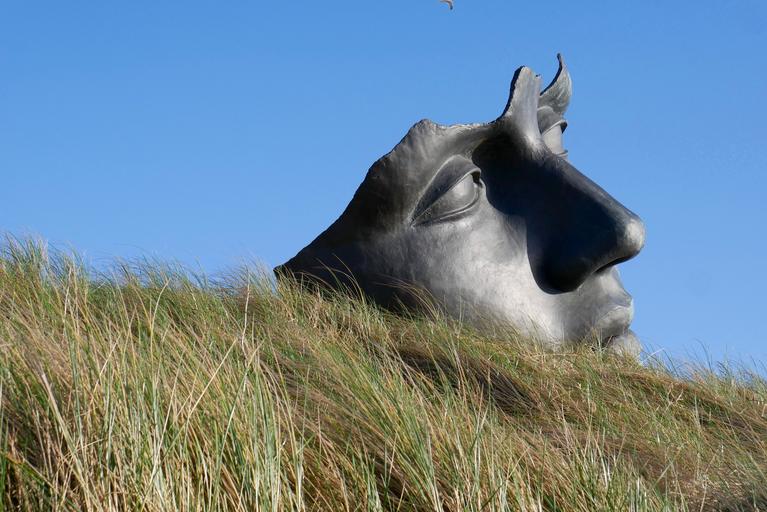 Keywords: face work of art image art quiet sculpture zen calm grass dune blue sky rest meditation calm down