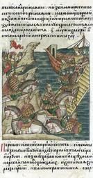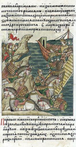 | Keywords: Facial Chronicle - b.06, p.029 - Battle of Neva.jpg  Лицевой летописный свод  евская битва большая с  имлянами; и убили новго одцы множество бесчисленное  имлян; и самому ко олю князь Александ сделал ш ам на лице ост ым своим мечом Тогда же п оявили себя в войске великого князя Александ а Я ославовича 6 х аб ецов кото ые с ним  ядом мужественно с ажались Пе вому имя Гав ила Алексич; он увидел как уводили ко олевича под ох аной на ко абль; и взъехал Гав ила за ними на коне до самого ко абля по доске пе екинутой на ко абль; и неп иятели вошли в ко абль пе ед ним а затем об атившись сб осили http //www akteon-elib ru/LITsIeVOI-LIeTOPISNYI-SVOD-Russkaya-letopisnaya-istoriya-Kniga-5/ 498 16 век anonymous Battle of the Neva Alexander Nevsky in miniature Files uploaded by Shakko from various sources Facial Chronicle v 5 - Laptevskiy tom 1116-1252 PD-Art |