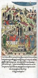 | Keywords: Facial Chronicle - b.07, p.084 - Dmitry Mikhailovich's cut of hair.jpg ЛИЦЕВОЙ ЛЕТОПИС ЫЙ СВОД В том же году было знамение на небесах явилась звезда на западе лучами вве х испуская словно хвост к полудню вниз В том же году были пуст иги у князя ихаила Я ославича Тве ского сыну его Дмит ию http //www akteon-elib ru/LITsIeVOI-LIeTOPISNYI-SVOD-Russkaya-letopisnaya-istoriya-Kniga-7/ 2 century 16 anonymous PD-Old Facial Chronicle v 6 - Ostermanovskiy 1-y tom 1254-1378 Files uploaded by Shakko from various sources 1302 in Russia Anna of Kashin in miniature Dmitry Mikhailovich Mikhail Yaroslavich in miniature |