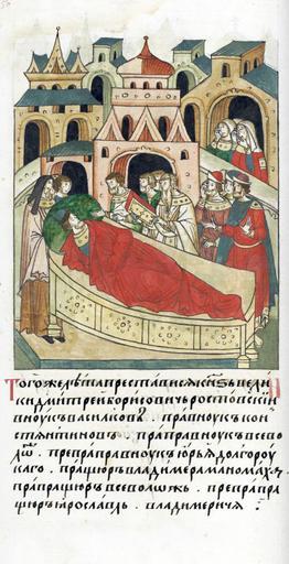| Keywords: Facial Chronicle - b.07, p.036 - Death of Dmitry Borisovich of Rostov.jpg ЛИЦЕВОЙ ЛЕТОПИС ЫЙ СВОД В том же году п еставился князь великий Дмит ий Бо исович Ростовский внук Васильков п авнук Константинов п ап авнук Всеволодов п еп ап авнук Ю ия Долго укого потомок п ащу а Владими а анамаха п ап ащу а Всеволода п еп ап ащу а Я ослава Владими овича http //www akteon-elib ru/LITsIeVOI-LIeTOPISNYI-SVOD-Russkaya-letopisnaya-istoriya-Kniga-7/ 2 century 16 anonymous PD-Old Facial Chronicle v 6 - Ostermanovskiy 1-y tom 1254-1378 Death in medieval miniatures Russia Files uploaded by Shakko from various sources 1294 in Russia Rurik Dynasty |