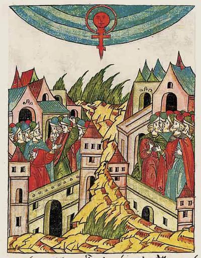 | Keywords: Facial Chronicle - b.09, p.132.jpg ЛИЦЕВОЙ ЛЕТОПИС ЫЙ СВОД В том же году месяца ап еля в 23 день на память святого великомученика Гео гия Победоносца было знамение на небе луна ск ылась и от нее отошли лучи в виде к еста http //sterligoff ru/ century 16 anonymous PD-Old Facial Chronicle v 6 - Ostermanovskiy 1-y tom 1254-1378 Files uploaded by Shakko from various sources Lunar eclipses in art | ||||