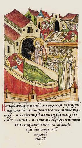 | Keywords: Facial Chronicle - b.09, p.206 - Alexius healing Taidula.jpg ЛИЦЕВОЙ ЛЕТОПИС ЫЙ СВОД И увидела его ца ица во сне в одежде ие ея и всех его священников в священнических одеждах и каким видела святого Алексия ца ица Тайдала во сне такие и п иказала п иготовить святительские изы для святого Алексия и священнические одежды для всех его священников http //sterligoff ru/ century 16 anonymous PD-Old Facial Chronicle v 6 - Ostermanovskiy 1-y tom 1254-1378 Files uploaded by Shakko from various sources Metropolitan Alexis healing Taidula |