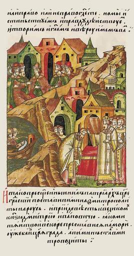 | Keywords: Facial Chronicle - b.09, p.275 - Patriarch Nilus and Pimen.jpg ЛИЦЕВОЙ ЛЕТОПИС ЫЙ СВОД И тогда п еосвященный ил пат иа х Ца ьг адский поставил Пимена в мит ополиты всея Руси Дошла об этом весть к великому князю Дмит ию Ивановичу что « итяй твой вско е п еставился вблизи Ца ьг ада а мит ополитом стал Пимен» http //sterligoff ru/ century 16 anonymous PD-Old Facial Chronicle v 6 - Ostermanovskiy 1-y tom 1254-1378 Files uploaded by Shakko from various sources 1379 in Russia Pimen Metropolitan of Moscow Mityay |